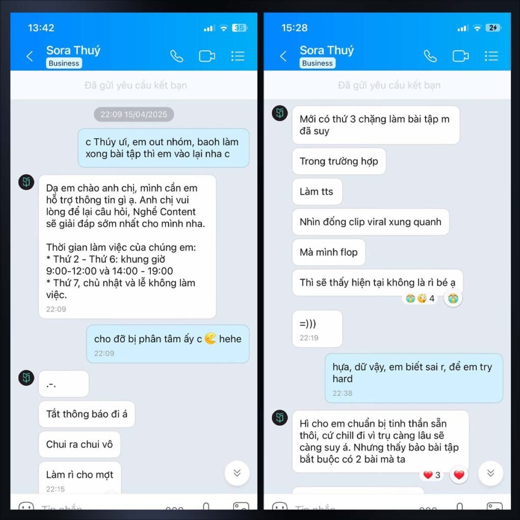 Em đã tính out nhóm ở 2 ngày đầu khi tham gia TTS tài năng vì lý do sợ không theo kịp các bạn, mà may nhờ có chị Thúy gõ đầu nên mới tỉnh táo lại :v May sao vẫn hoàn thành được bài tập.